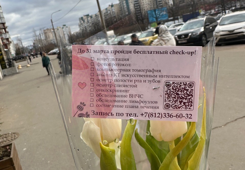 В честь 8 марта мы организовали раздачу тюльпанов жителям Приморского района, приглашая пройти чек-ап полости рта по 10 показателям. Нас искренне радовало видеть улыбки на лицах женщин и наблюдать их радость от неожиданных приятных подарков!