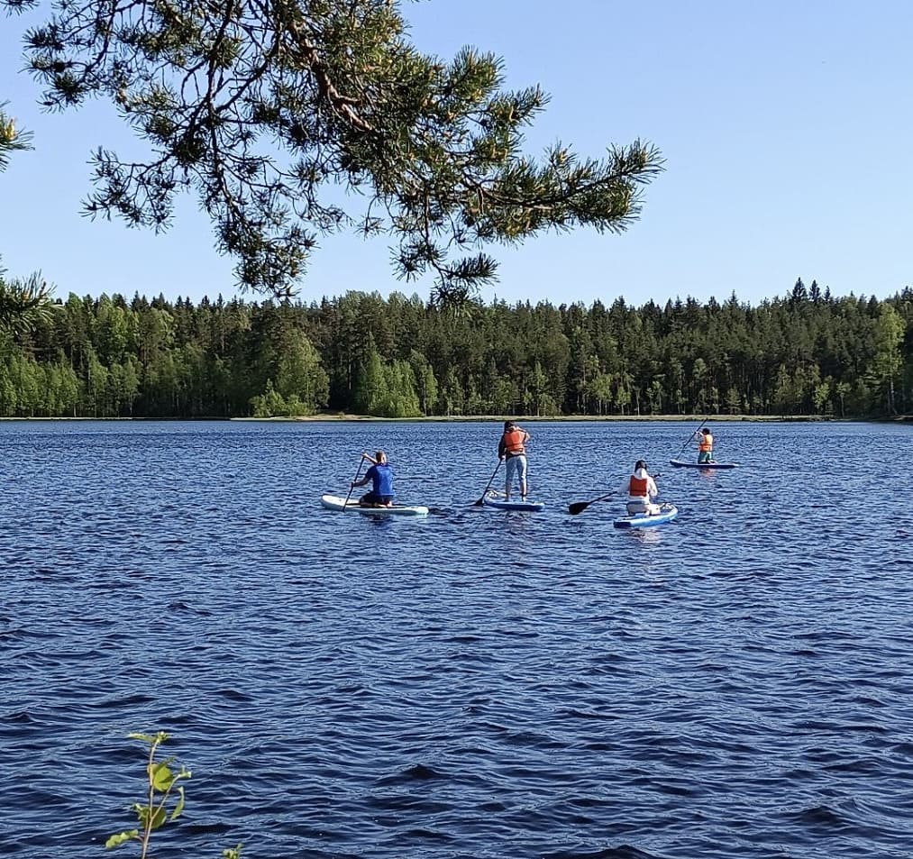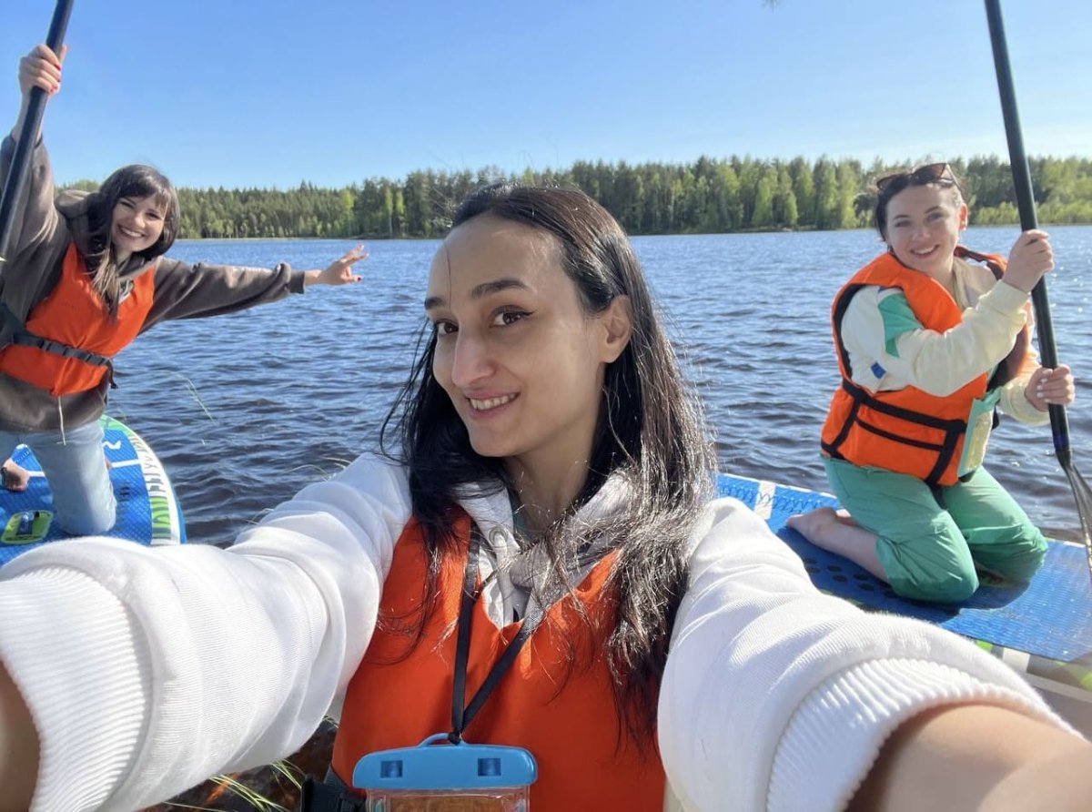 Нас встретило чистое, просторное Пастерское озеро. Утро начиналось с тишины: кто-то шёл к воде с кружкой чая, кто-то разогревал завтрак, кто-то просто сидел у берега и смотрел на гладь. Потом были сапы, катамараны, мяч, прогулки в соснах, фотографии, спонтанные танцы, шутки, тосты, рассказы и лёгкая усталость к вечеру. Мы сидели у костра, пели, обсуждали, вспоминали, смеялись. Кто-то отвечал за ужин, кто-то мыл посуду, кто-то заботился о том, чтобы всем было тепло. Не по плану, не по ролям — просто так. Всё работало само собой. Каждый внёс что-то своё. И всё сложилось.