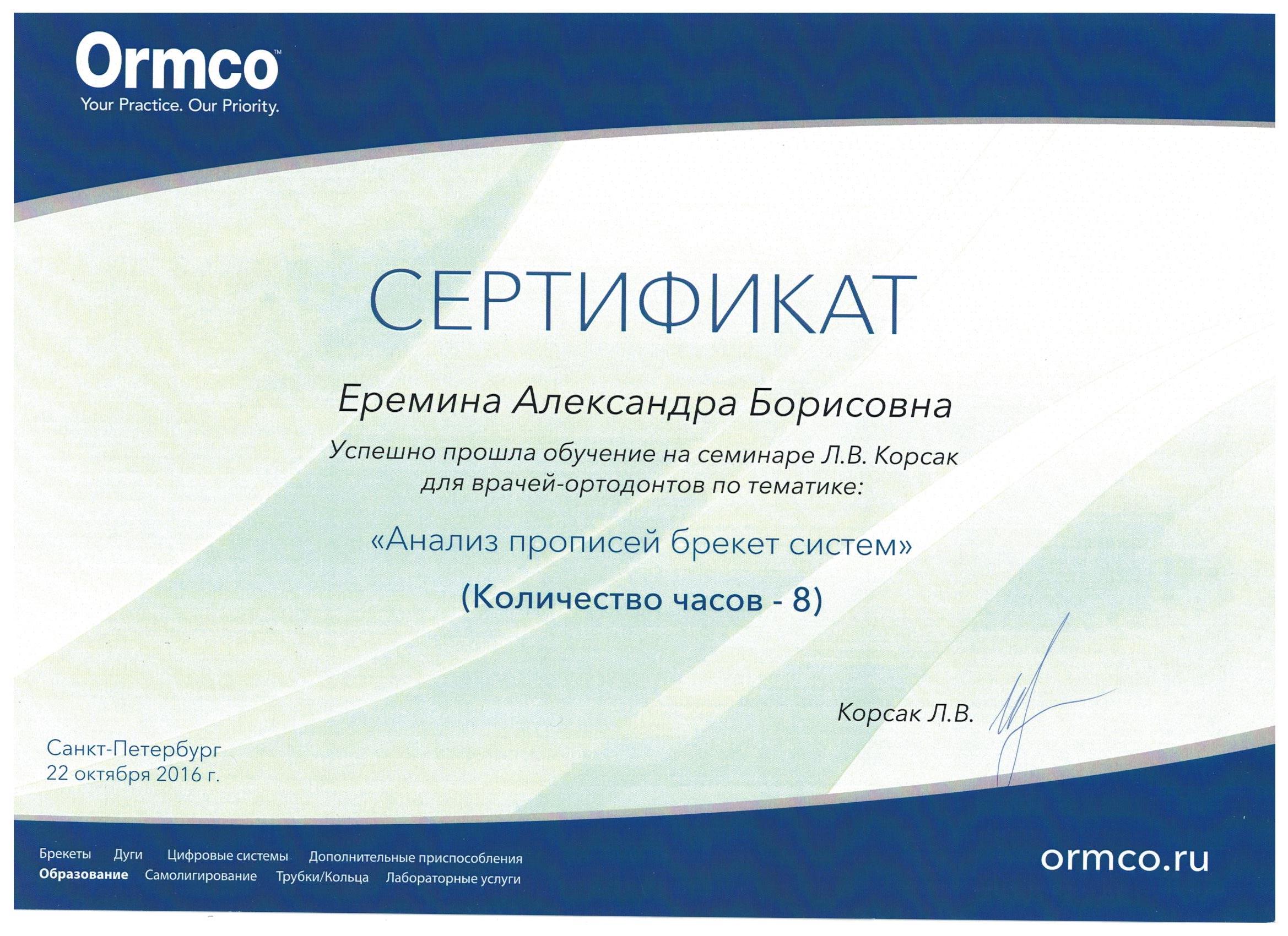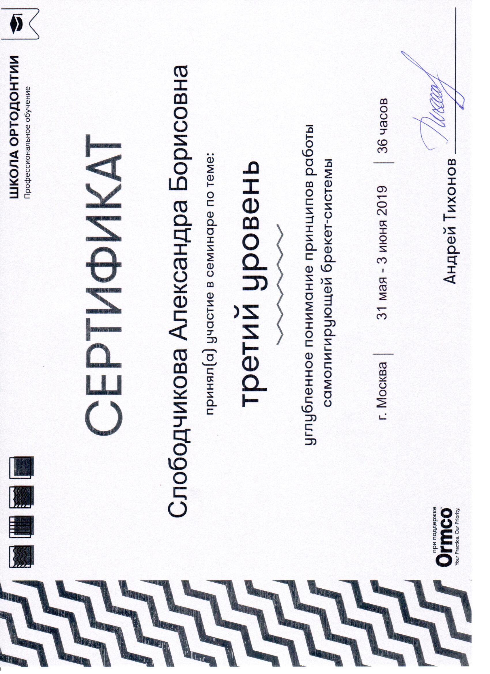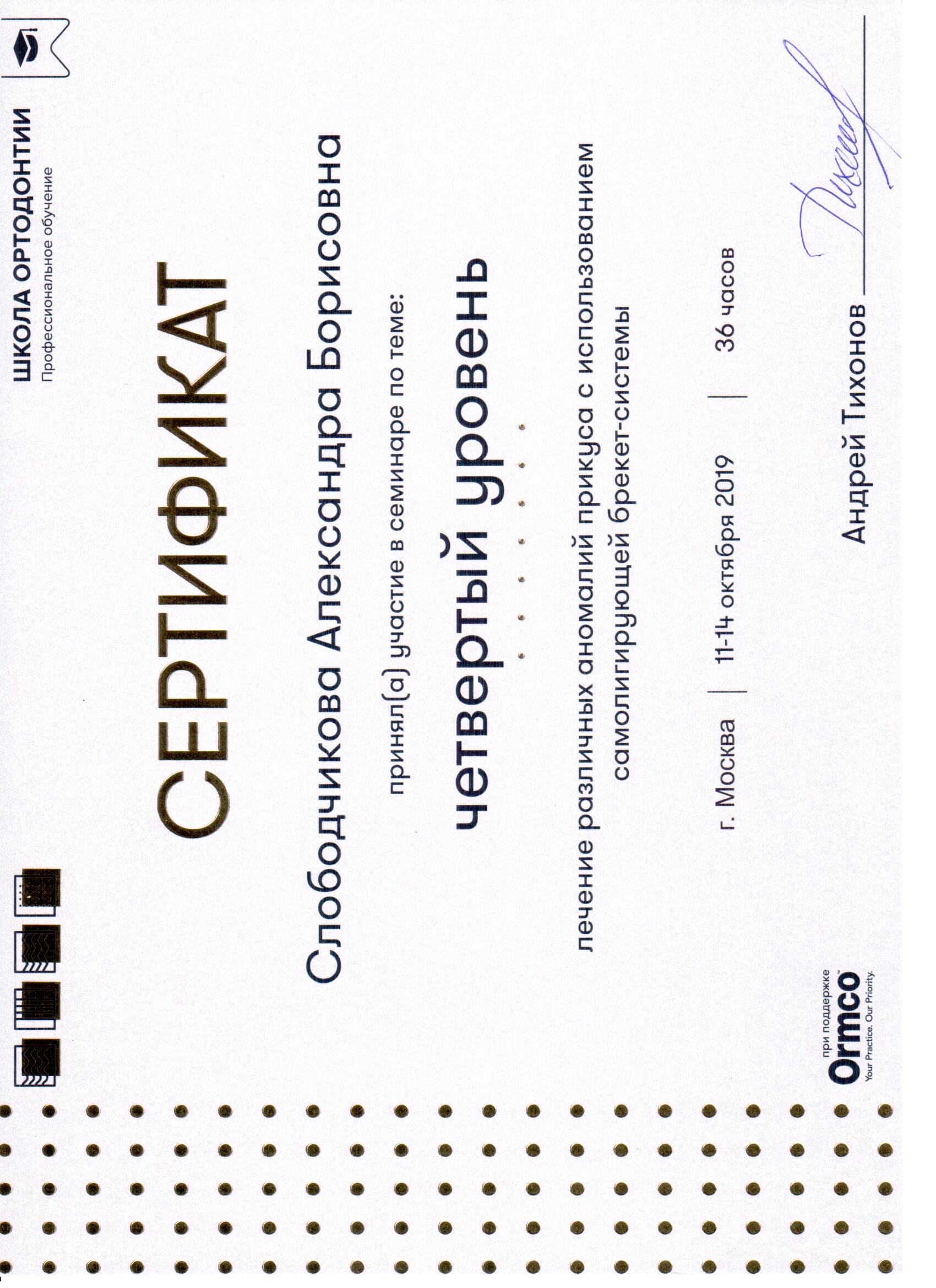 Прошла ординатуру в СЗГМУ им. Мечникова по специальности "Ортодонтия" в 2017 году.